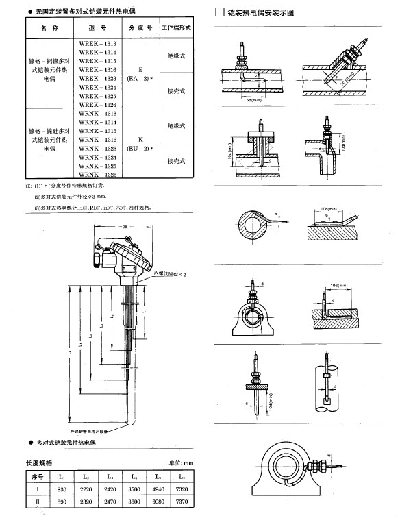 (3)直徑Φ2mm鎧裝熱電偶須和本廠協(xié)商訂貨。